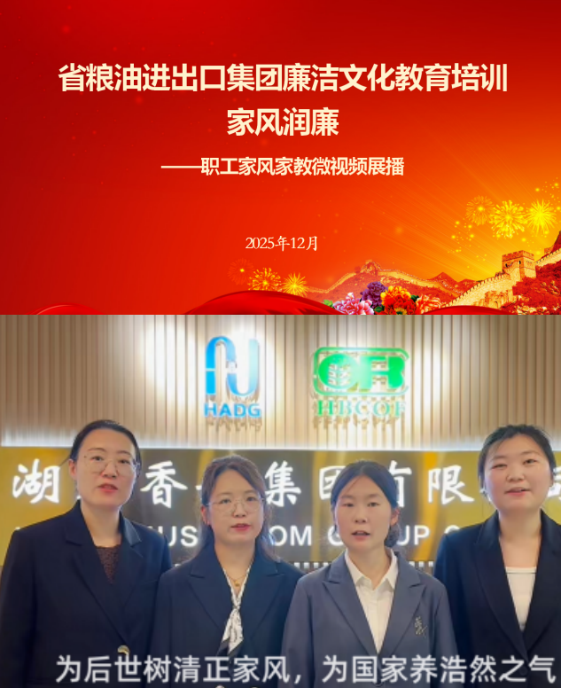 “家風(fēng)正則民風(fēng)淳,家風(fēng)清則政風(fēng)廉。”省糧油進(jìn)出口集團(tuán)深刻把握家風(fēng)建設(shè)與廉潔文化建設(shè)的內(nèi)在聯(lián)系,各級黨員干部帶頭廉潔修身、廉潔齊家,弘揚(yáng)清正家風(fēng),帶動社風(fēng)民風(fēng)。以“家風(fēng)潤廉”為抓手,開展職工家風(fēng)家教微視頻征集和展播,鼓勵(lì)干部職工及其家庭成員圍繞孝老愛親、勤儉節(jié)約、廉潔齊家、遵紀(jì)守法等主題,用鏡頭記錄和講述家風(fēng)故事、家規(guī)家訓(xùn)。在企業(yè)內(nèi)部展播《傳承家風(fēng)》《家是最小國》《家風(fēng)頌》等職工視頻作品,擴(kuò)大宣傳覆蓋面和影響力,引導(dǎo)全體員工注重家庭、注重家教、注重家風(fēng),讓廉潔理念從企業(yè)延伸到家庭,從職業(yè)操守拓展到生活品行,形成“以家護(hù)廉、以廉興家”的良性互動,構(gòu)建“企業(yè)+家庭”雙向監(jiān)督的廉潔防線。